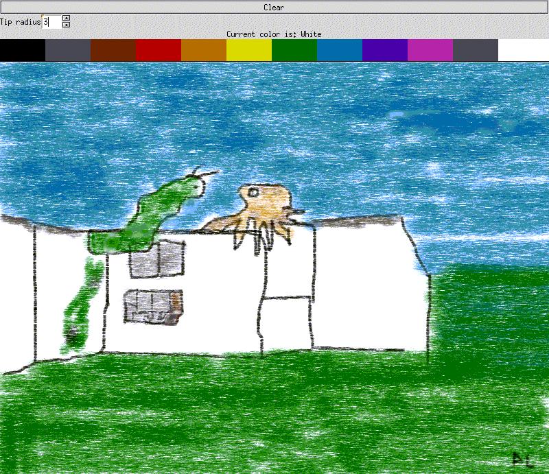While I was preparing tonight's feast, I noticed another mollusc crawling up the window. This evening, it was a snail. By the looks of it, it's spent most of the day climbing up the outside of the house. If anyone out there is an expert in the study of molluscs, maybe they could mail me and answer this question: why do slugs and snails climb houses? I thought that maybe the mollusc can sense magnetic fields and when it wakes, decides 'right! today I will go foraging to the north!'. Off it goes, but bugger me if there isn't a blooming great house in the way. The mollusc, thinking that perhaps it has encountered a novel sort of boulder or pebble, attempts to climb it. I wonder what will be climbing up the kitchen window tomorrow? A giant squid, maybe, or a sea cucumber, or perhaps a beluga whale - you never know. [Astute readers may notice that the sketch linked to by the words 'giant squid' and 'sea cucumber' does not show a depiction of a squid, but shows an octopus instead. For some reason, I got squid and octopii confused.]